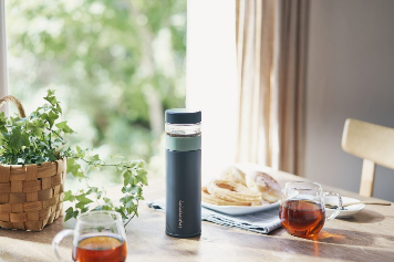 Lalaluctus Tea Bottle - Stainless Steel Tumbler with Tea Strainer - Dark Gray - 400 ml