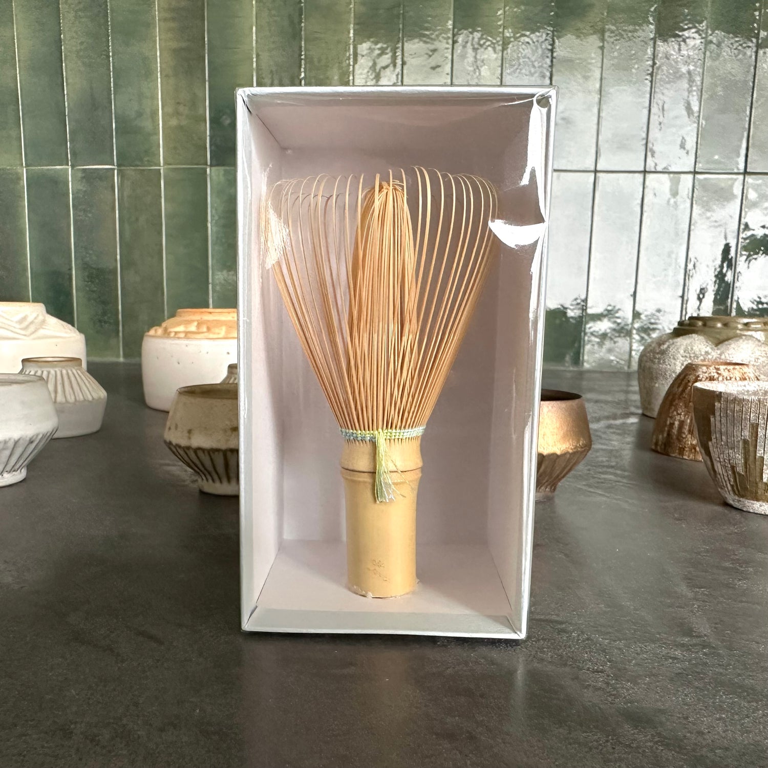 - 茶筅を茶碗の底に強く押し付けると、先端が折れてしまうことがあります。長くお使いいただくために、優しくお使いください。